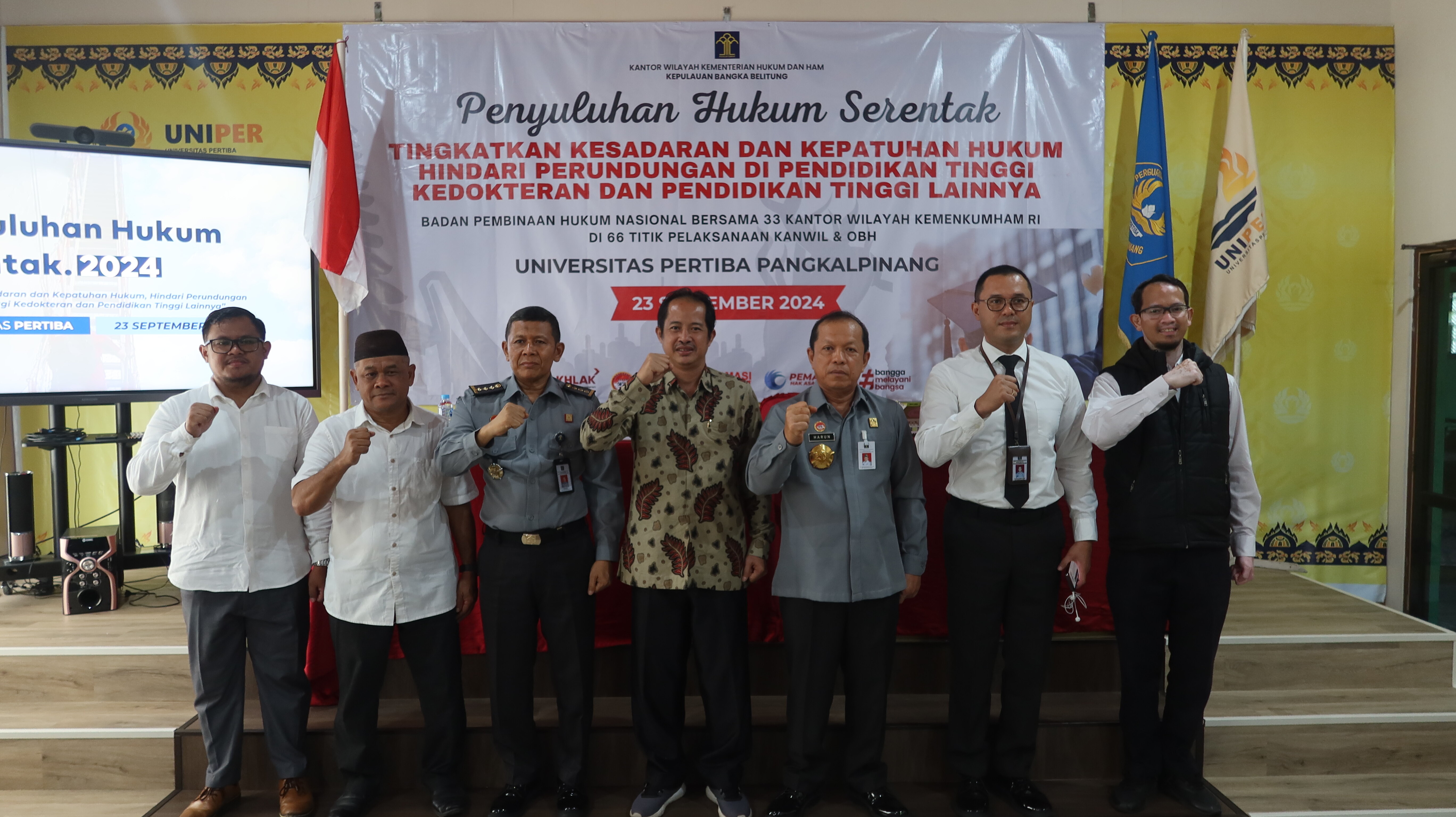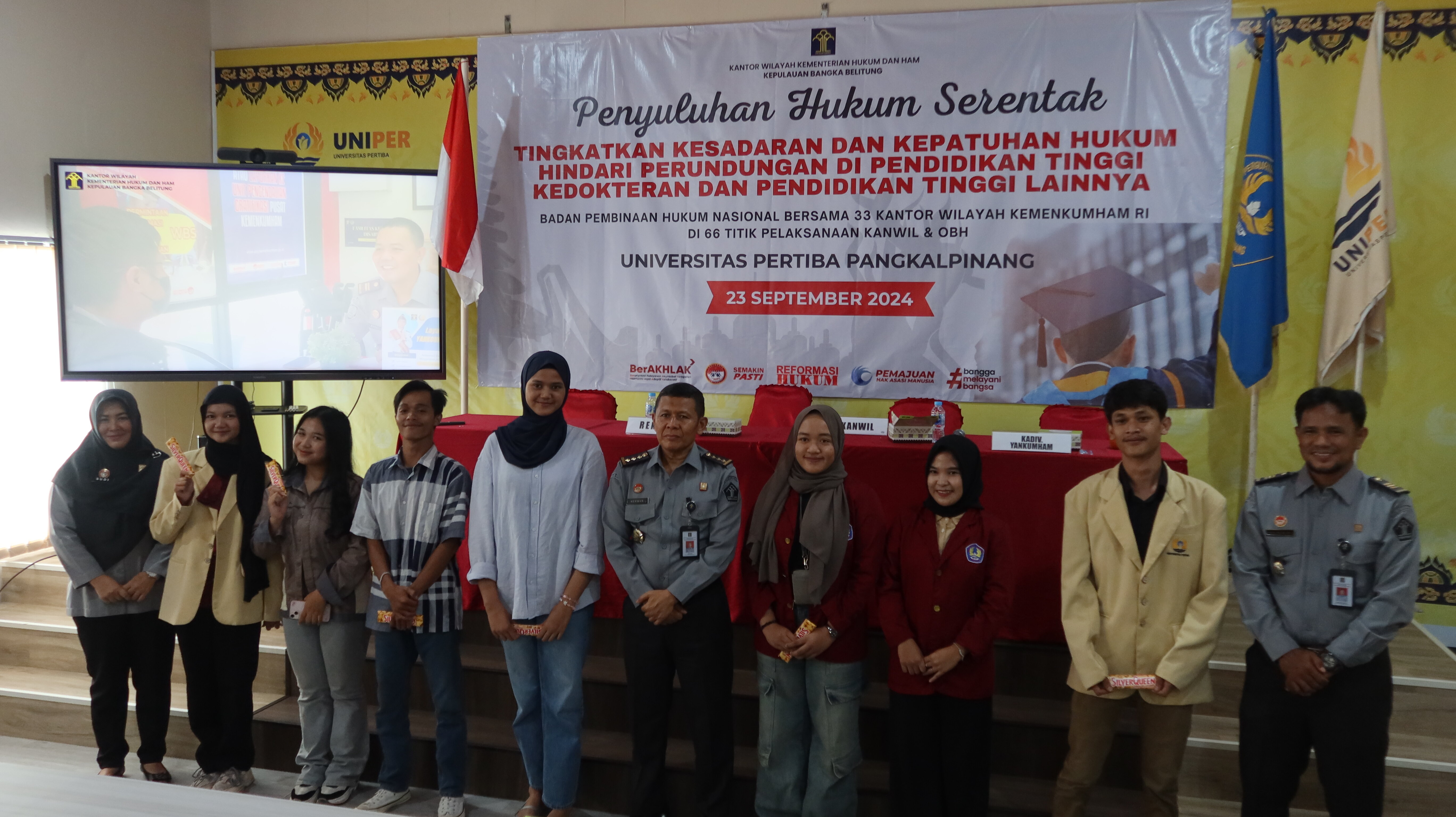 Di Provinsi Kepulauan Bangka Belitung, Kantor Wilayah Kemenkumham Bangka Belitung menggelar penyuluhan hukum ini di Universitas Pertiba, Pangkalpinang. Acara ini dihadiri oleh berbagai kalangan akademisi, mahasiswa, dan masyarakat umum yang antusias mengikuti penyuluhan untuk meningkatkan pemahaman mereka tentang hukum serta upaya pencegahan perundungan di lingkungan pendidikan.