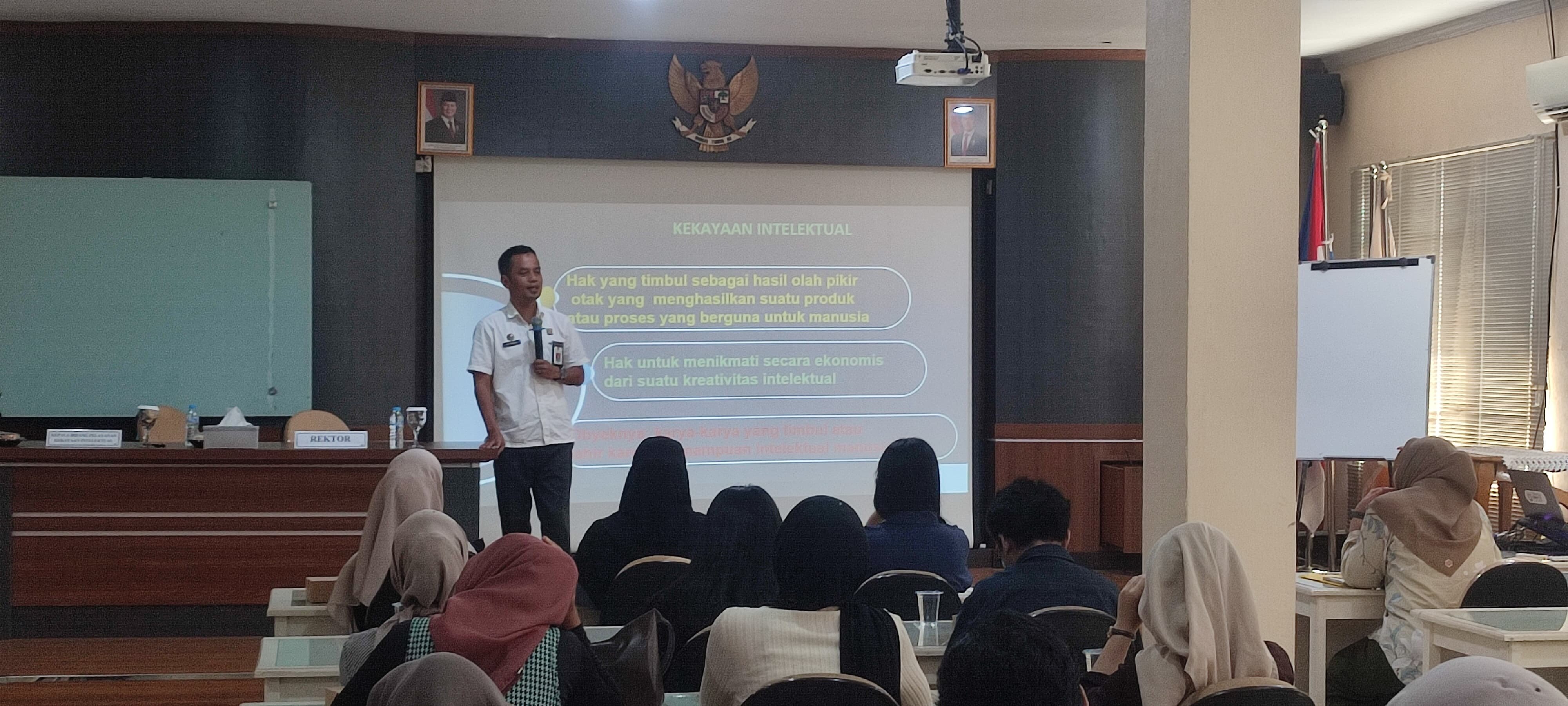 Acara ini menghadirkan narasumber Adi Riyanto, S.H., M.H., yang merupakan Kepala Bidang Pelayanan Kekayaan Intelektual Kanwil Kemenkum Bangka Belitung. Dalam pemaparannya, Adi menyampaikan pentingnya pemahaman HAKI di lingkungan kampus, terutama dalam mendukung perlindungan terhadap karya ilmiah, inovasi teknologi, dan produk kreatif mahasiswa serta dosen.